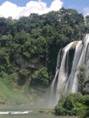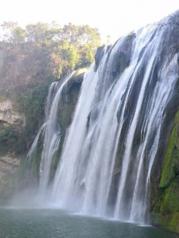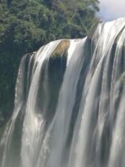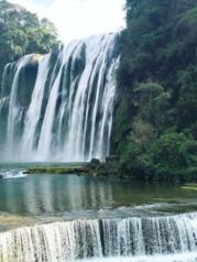 这是我两年里第二次来黄果树瀑布了,就因为它是中国最大的瀑布!据说叫这个名字是因为这里附近的很多树上都结着一种黄果子,因此得名,它的原名好像是叫白水河瀑布。上一次来水帘洞正在维修,留下了很大的遗憾,这次终于亲自穿越了水帘洞,好兴奋!虽然我来的这个季节并不是旺季,但是感觉水也不算小,进水帘洞还是需要穿雨披哟!整个景区的核心就是大瀑布,围着瀑布走一圈,从各种角度欣赏完瀑布也就算玩好了,走的快一点大约两个多小时可以走完。我们是步行下去,然后乘坐扶梯上山,收费30一人。大瀑布真的很美,希望以后有机会再来!!