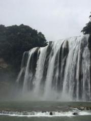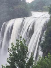 黄果树瀑布是中国最大的瀑布景区,景区非常成熟,指示牌,道路,景区内交通,老少咸宜。 我们去的时间段不太好,丰水期,水流很大,水浑浊,水帘洞也关闭了,但是黄果树的壮观雄伟还是尽收眼底,站在离瀑布最近的地方水雾很大,浑身都是湿的,听着巨大的水流声,心里一些不快就让它随着瀑布倾泻而出吧!在大自然的景观中,人真的很渺小。 5月底赶上一带一路会议余温,持北京身份证门票半价,不包括大巴车,还有绿色通道,瞬间觉得高大上了。