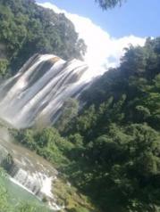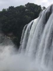 黄果树瀑布气势磅礴,水流湍急,瀑布面宽。确实是亚洲最大大瀑布。但是我们一行六人去的时候,恰遇夏季旅游高峰期,人山人海,在过水帘洞时,像蚂蚁慢行一样,一步一挪。很是辛苦,相信那天和我们一起过水帘洞的人都有同感。