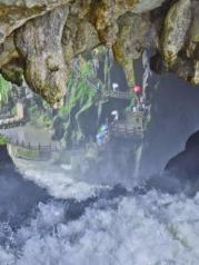 我们是从黄果树包车来的龙宫,因为错过了那边14点出发的班车。之所以费尽周折也一定要来龙宫,因为它名气实在太大,首先它是5A级景区,其次它是各种喀斯特地形集于一身的景点,不是有天下喀斯特,尽在龙宫”之说嘛!它拥有全国最大的洞中瀑布---龙门飞瀑,我去过这么多洞,从没见过哪个洞中有如此壮观的大瀑布,实在是太震撼了!和常规路线相比,我们是走的反向路线,从漩塘大门进去,然后爬山,再坐船,先二进龙宫,再一进龙宫,最后从龙潭出。由于时间冲忙,有些地方就放弃了,比如那块很有名的龙字田就没有去欣赏。