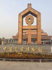中国文字博物馆——该馆是一组具有现代建筑风格和殷商宫廷风韵的后现代派建筑群,由字坊、广场、主体馆、仓颉馆、科普馆、研究中心、交流中心等建筑组成,总占地143亩,总建筑面积34500平方米。共入藏文物4123件,其中一级文物305件,涉及甲骨文、金文、简牍和帛书、汉字发展史、汉字书法史、少数民族文字、世界文字等多个方面。2007年11月29日,中国文字博物馆一期工程开工,2009年11月26日正式开馆。!