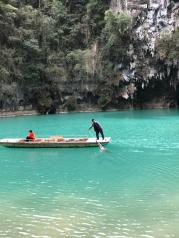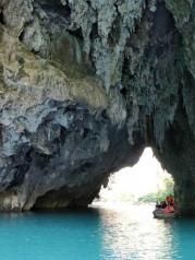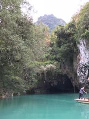 三门海水上天坑是典型的喀斯特地貌,老实说这样的景色广西遍地都是,唯一不同的就是这里的石山有地下河,坐着小船穿过三个山洞,观看所谓的天窗,可以说是别有洞天,游船进洞里面的,水很漂亮,整个人感觉进入仙境一样,简直太完美了。