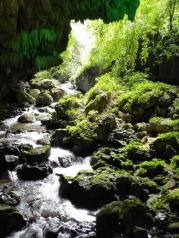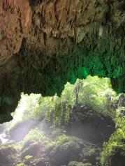 通灵大峡谷内的景点围绕小溪展开,分布四周。行走到小溪的一头,发现河水一下子在洞口消失,变成地下河,在丰水期游客不得随意进入。然后,折返行至小溪的源头,看见一瀑布飞流直下,通灵大峡谷的景色全由瀑布而生,非常值得一游!