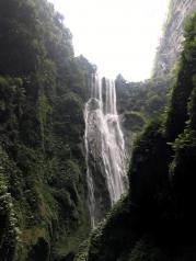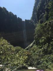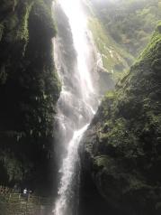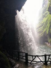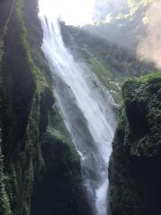 从通灵大峡谷的入口走到谷底大约八百多级台阶,台阶比较湿滑,头顶又有水滴落,老人家和小朋友不建议游览。但是坚持走到谷底别有一番景色。植物郁郁葱葱,暗河流水潺潺,大瀑布气势恢宏,特别是瀑布水帘背后穿过更是难得的体验。