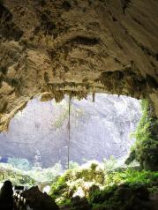 百魔洞非常值得一游,空气很好!洞中雾气缭绕,变幻无穷,天坑下面是郁郁葱葱的各种植物,还有很珍贵的恐龙时代植物,更使这个巍巍景观显得诡秘多姿。百魔洞内含有丰富的负离子,也拥有高浓度的电磁场,据说这里很适合养生。