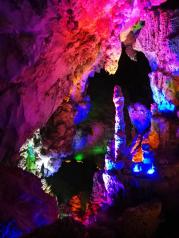 百魔洞非常值得一玩,让我印象深刻,一个洞接着一个洞,很大很凉快。不行能走一个多小时吧,里边到处都是五颜六色的灯,让自然景观更加神奇,其中最为壮观的是100多米高,几百米宽、1000多米长的大殿堂内,几十个70-80米高、3-5米直径的钟乳石柱,构成庞大的石塔群。