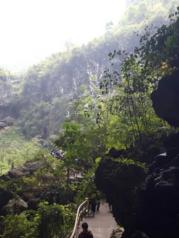 百魔洞非常值得一游,空气很好!洞中雾气缭绕,变幻无穷,天坑下面是郁郁葱葱的各种植物,还有很珍贵的恐龙时代植物,更使这个巍巍景观显得诡秘多姿。百魔洞内含有丰富的负离子,也拥有高浓度的电磁场,据说这里很适合养生。