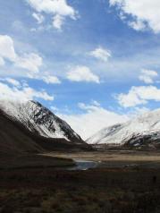 安久拉山(4325米)。其实从 怒江 大桥开始,一直在上坡,但到安久拉山路线长,故一直很平缓,完全没感觉。甚至没注意垭口在哪儿,就这么稀里糊涂的过来了。植被很稀少,路上车子也是少得出奇。左边有个高山湖泊,视野开阔,显得很空旷,万籁俱寂,感觉有些凄凉