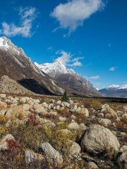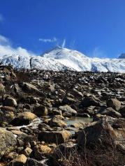 从然乌湖去往来古冰川,要将近1小时车程才到达。冰川山下有藏民收门票,除了特权车辆可以开到观景台,其他人都只能步行或收费骑马上去。来古冰川海拔有4000左右,走到观景台大概20分钟。其实观景台离冰川还有一段的距离,中间隔着全是大大小小的乱石堆和荆棘杂草,一般只能远远观望。