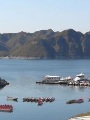 易水湖每年旅游开放时间是3.15到10.8,淡旺季很明显,旺季需要提前预定房间噢。 我们在售票处买的票,票价145元/人(包含门票和船票),八十岁的老人凭老年证可以免门票