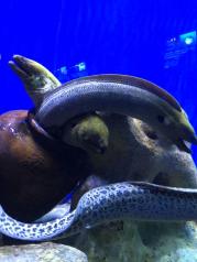 第一次去北海海底世界看海鱼类,没抱多大希望,去过去过其他大型的不建议去,品种都是鱼缸小鱼类,适合小朋友多点,还有丑丑的蛇,都没有海豚,企鹅类的,五分的话给三分,这点东西门票贵了,网上订票便宜些,里面给你免费钥匙扣然后拍照免费送小照片,放大的要收费20一张。