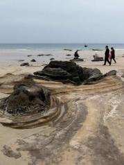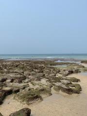 涠洲岛的五彩滩,大片大片的火山熔岩裸露出来,退潮后留下一大片的水洼,一片繁星点点的海滩。还有天然泳池—滴水丹屏绝壁上部绿树成荫,夏天适合游泳,春天适合晒太阳。以一首诗结束点评:涠洲雄卧北部湾,最是煞人满目海。鳄鱼山口碧如玉,滴水村畔有丹屏。