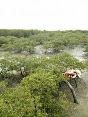 北海金海湾红树林就是一片红树林,因为天气太过炎热,没看到海鸟,只看到很多招潮蟹和弹涂鱼,地上布满了螃蟹的小洞,有些密恐。这里建了个栈道,走一圈10分钟,但电瓶车要坐进去也要10多分钟,就是习大大来过,所以出名了。