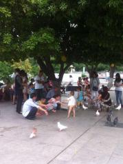 北部湾广场就是一个城市广场,有雕塑,有大榕树,有鸽子。不少当地人在那里晨运,跳舞,喂鸽子。环境不错,休闲散步的好地方。