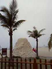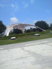 中央有个南珠魂雕塑,北部湾广场周边种有不同的树,有木棉和龙眼,感觉没有太大的惊喜 周边都是大商场和超市 电动车和摩托车很多 马路显得很乱 人行道可能长期被电动车、摩托车压着走,所以很破烂,很多坑,由于当地人大部分都是开电动车出门,所以广场周边的停车场都停满了,行人走路的时候要留意,广场不算太大,但是有各式各样的食肆,吃东西很方便,超市是在负一层,广场周边有很多公交站,开往不同方向,想坐公交去银滩的话,在这坐车很方便。离火车站也很近,打出租车也很方便。