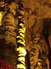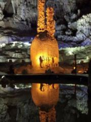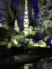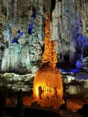 来织金洞之前,对它不是很了解,洞内比洞外低10℃,需多穿一件外套。进洞口第一个景点“日月双辉”之美让我感到里面别有洞天,产生了深入探寻的想法。洞内为“喀斯特地貌大全”,各种奇形怪状的石笋、石柱在灯光的映衬下美轮美奂,让大家惊呼叫绝。其中,在银雨树和霸王盔有两处留影点。可能自身体力还行吧,整个游览仅用2个小时,景区导游的讲解很精彩,不愧为“中国最美旅游洞穴”、“世界地质公园”。