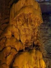 说到织金洞我觉得洞本身真心震撼人心,溶洞长度和高度都是我见过最壮观的,洞内钟乳石奇形怪状,让人不得不惊叹大自然的鬼斧神工,整个溶洞属于旱洞,洞内潮湿有滴水,距离需要步行一个半到两个小时,慢慢的就走热了。本人觉得不好的方面是,时值国庆假期,游客较多,而洞内彩色灯光开的较少,应该是怕太美而让游客驻足时间过长不利于人员流通吧?!所以有些遗憾没有看到更漂亮配色下的溶洞奇幻景色。