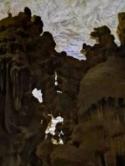 织金洞是我看过的最美的溶岩洞,没有之一。 入洞,即被日月同辉的壮美吸引,而"月洞"上,几株不屈不挠的小树,居然在那么恶劣的环境下长得生机勃勃,真令人惊叹! 顺着人流前行,移步换景,洞中遍布的石笋、石柱、石芽、钟旗等各种堆积岩石,形成千姿百态的岩溶景观。洞道纵横交错,石峰星罗四布, 洞形规模宏大,岩石形态万千。万干气象,无限风光。 雄伟壮观的“地下塔林”、虚无缥缈的“铁山云雾”、一望无涯的“寂静群山”、磅礴而下的“百尺垂帘”、深奥无穷的“广寒宫”、神秘莫测的“灵霄殿”、豪迈挺拔的“银雨树”、纤细玲成的“卷曲石”、栩栩如生的“普贤骑象”、“婆媳情深”…… 一幅幅大画卷,一处处小场景,令人心魄震惊,