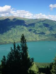 这观鱼台景点想是每个去喀纳斯必去的,非常非常推荐,景色也非常非常美,从中转车站坐到观鱼台的车,下来要走1068个台阶,就到达顶峰,其实不是太高,慢慢上不会太累,在山顶可以看到喀纳斯河还有村庄,星星点点的村屋散落着,河水碧波粼粼,远处的雪山,树木茂盛,一切都那么宁静祥和,让人仿佛置身世外仙境,要不是游人太多,把你拉回凡尘,我想每个到喀纳斯的人都会迷失在这优美的环境中。