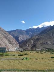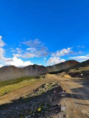 在觉巴山的一侧,可以看到东达山的雄姿。垭口海拔5130米,为川藏线第一高度。山上荒凉孤寂,气候多变,向阳方向,山谷里绿意深沉,蕴藏着更多的生机。前方有村镇可以休息补给,不用担心吃住问题。在看到垭口处飘扬的经幡时,坡度会变得更陡,呼吸也开始困难。东达山垭口本来是川藏线的第二高度,但这两年居然还长个了,从5008米长高了100多米,超过米拉山,成为了沿线第一高度。这座山骑行强度确实很大,幸亏是早有准备,加上天气晴好,最终平稳度过。山上海拔太高,四周一片荒凉,连只鸟都没有,而且下山的弯道很急。