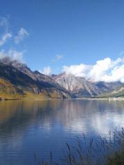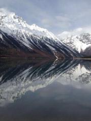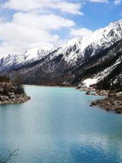 然乌湖不同的季节,有不同的风景。冬天路不好走,但雪山很美。现在这个季节有平静的湖水、远处才有白雪皑皑的雪峰,景色是如诗如画.