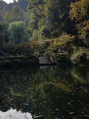 岳麓山是南岳72峰的最后一峰,湖南大学、岳麓书院坐落于山脚下,不远处是著名的爱晚亭。十一月中,细雨绵绵,遇到很多中学组织一批批的学生来岳麓书院、爱晚亭参观,把景区搞得吵杂异常。向上攀登,隔绝了人群,岳麓山的静谧才逐渐凸显出来。上山的主路是板油路,私家车可以通行,侧边有石阶铺制成的小路,通往各个隐藏景点。山上有各处亭台、溪流、革命志士黄兴、蔡锷均归葬于此。个人比较喜欢古岳麓寺,寺内清幽、宁静,是个静心修佛的好地方,每隔一段时间便见僧人顺时针绕行主殿一周,有的还会一边踱步一边唱诵南无阿弥陀佛,见到游客还会打个招呼,很有意思。