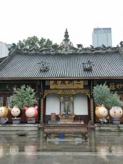 大慈寺始建于魏晋时期,天竺(今印度)僧人宝掌禅师东游中土,入蜀参拜普贤菩萨,在成都建大慈寺,距今已有1600多年。如今的古大圣慈寺跟成都著名的购物中心太古里比邻,可谓闹市中的一方净土,两者却又和谐共处,不得不令人惊叹