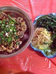 来新场古镇是奔着一种小吃而来。这种小吃你可能没吃过,但是应该听到过。川菜--毛血旺。它的原始出处就在新场古镇。小吃店随处可见,最正宗的为周家毛血旺。听说有成都人在周末专门到此品尝。想必前来的游客多是为此而来。 正餐必须要品味周家毛血旺。应该是名声在外