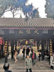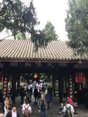 武侯祠门票要50元一个人 里面的三义庙和几个地方还在维修 对历史人文感兴趣的可以去参观参观 里面刘备的墓地蛮大的 正值清明节 个人认为还是不适合在那里拍照。发现一尊关二爷的雕塑 造型有趣。 还有一处团扇展馆也不错