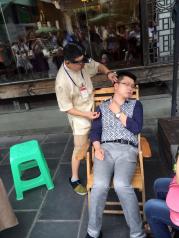 宽窄巷子表现了成都人民的生活特色,宽巷子表现了老成都的“闲生活,窄巷子表现了老成都的慢生活,井巷子表现了成都人的新生活。挑耳是他们那里比较有特色的项目,挑耳的师傅全副武装,挑一次很舒服。