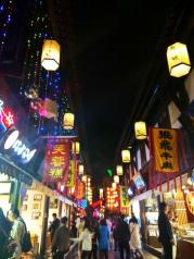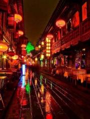 在成都的最后一个晚上,留给了锦里。 人们都喜欢在夜晚的时候来到锦里,因为夜下的锦里,无疑是璀璨的。街旁店铺里的各色灯光,交织着路边随处可见的大红灯笼的光色,所有的一切,似乎都变得流光溢彩起来了。 夜下的锦里最为热闹。锦里在武侯祠正门边有一个入口,直通过古戏台之后,街道开始岔开,游客们从这条岔路走过,不经意之间,又从另一条岔路转回。街道两边开着各种各样的店铺,即便不买,游客们也会好奇的走进去看看,叽叽喳喳的品论一番,或是认认真真的讨价还价一下,清明上河图所展现的繁华街景,大抵就是如此这般的样子。 夜下的锦里也是美味的,所有成都知名的小吃,在这里都能寻到踪迹。做好的食物挂在食铺的橱窗里,被灯光包裹