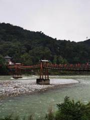 安澜索桥又叫夫妻桥,横跨在内江外江分水处,当天大雨大风,走在铁索桥上晃得厉害。近距离感受滔滔江水从桥下过,风景和体验都不错,一定要走一次。
