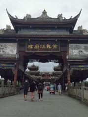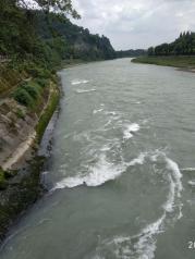 安澜索桥是个很有意思的一个景点吧,走起来非常有意思,左摇右摆的,下面就是汹涌滚滚的岷江水,如果有心脏病或者胆子小的人不建议走,人太多的时候走晃动非常大。以前的安澜索 桥损毁过,现在这个是修复后的,下面是水泥墩,上面安装了很多钢索建起了的桥!