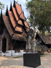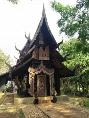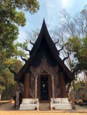 黑庙也叫黑屋,是泰国艺术家Thawan Duchanee建造的私人博物馆。黑庙并不是真的庙,只是因为整体色调是偏黑色,再加上清莱有座著名的白庙,才被人称为黑庙。它的建筑是全实木,里面收藏了艺术家许许多多的艺术珍品,有动物毛皮、牛角、画像、大贝壳、抽象雕塑等等…漫步在花园里的各个黑色小屋,他们色彩浓郁,形状奇怪,艺术气息之浓,让我感受到了黑屋主人的清奇脑洞,真是让我挪不开步,舍不得走了。