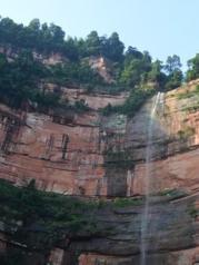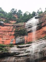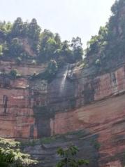 佛光岩有两部分,一部分是到佛光岩,另一部分是从佛光岩继续前行,同工作人员打听说大约需要三四个小时,我们因为还有一个景点,放弃了继续前行,从佛光岩原路返回。佛光岩景区非常漂亮,可以由游客中心顺着徒步步道步行,也可以坐摆渡车到达入口处。摆渡车票25元,需要购买。时间关系我们选择摆渡车,如果有时间,会选择步行。那样会更有情趣。佛光岩景区景致不错,有“世界丹霞之冠”之称的佛光岩呈弧形, 弧长1 0 0 0余米、高3 0 0余米。佛光岩早在侏罗纪、白垩纪时代就已形成,像是恐龙灭绝前夕用生命和鲜血书写的一部红色无字天书,摊开在半天云海中。佛光岩中间有一条高2 0 0余米, 宽4 0 余米的柱状大瀑布, 犹