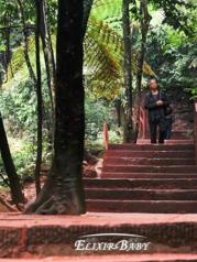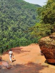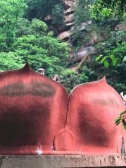 和佛光岩连在一起的五指峰没有其他省份的丹霞好看,可以不去。从景区入口到佛光岩先坐电瓶车,放你下车后要走一公里多一点,是缓慢的上行阶梯。景区里有很多桫椤植物,景区丹霞的植被很茂盛。如果想从侧门拍瀑布,要从平台连接的两条上行阶梯往上走,一条从佛光岩左侧,一条从佛光岩右侧。右侧的上行阶梯可视角度更高一些。