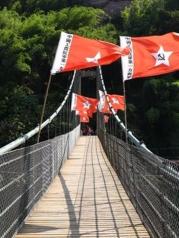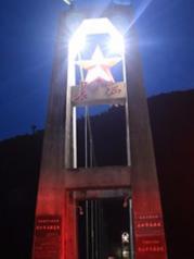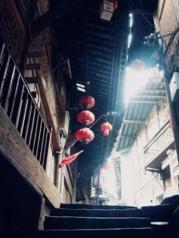 进入丙安古镇,需要先踏上一座大桥跨过 赤水 河。单是这座布满红军标记的大桥就很有感觉古镇我看都差不多一样。丙安古镇呢,商贩店铺售卖红色纪念品的多一些, 比如 说军帽军挎五角星等等;很多店铺的名称也跟红色红军有关;其次当然就是掌灯时分,灯笼上那明晃晃的“丙安”二字,其余的和其他古镇也没什么区别。丙安古镇好像只有两个门:太平门和东华门。太平门是正门,游客都从这里上行进入古镇;而东华门应该是后门,门外冷冷清清的是一片河滩,游客是不会从这一侧进城的。东华门是我在古镇里看到的比较醒目的古迹吧。我在漫无目的的行走中,就看见一个向下的门洞颇有感觉:向下走了几步走出门洞外,回头仰望才知道这个就是“东华门”,也