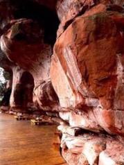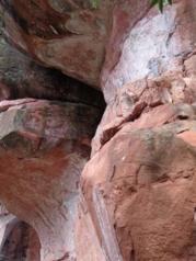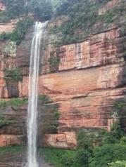 佛光岩景区环境优美,翠竹茂密,佛光岩红色的山体很壮观,一道银瀑飞流直下,现在是冬季水少只有约一米宽,水多时可达42米宽。坐电瓶车往返,到莲花台观景台看佛光岩正好1.5小时。
