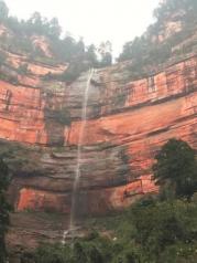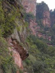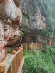 佛光岩被称为“世界丹霞之冠”,形成于恐龙称霸地球的侏罗纪、白垩纪。佛光岩呈弧形, 弧长1 0 0 0余米、高3 0 0余米。高2 0 0米的柱状大瀑布如银练般从云中泻下,飘逸俊洒。然后与血红的岩壁相互融合。同时,佛光岩景区也是一个植物王国,最多就是与恐龙同时代的植物化石——桫椤。昨天做了攻略,买了双程电瓶车票,一是这段路景色一般,二是路程较长。因为昨天走累了,只去了佛光岩一个景点就打道回府了。