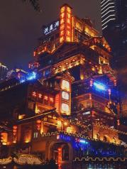 去重庆旅游,一定会非常熟悉洪崖洞这个景点。重庆的景点排名中从来都是在Top5中,被称为重庆的千与千寻,而这种神奇只有在重庆这座山城才能感受的到。第一眼看图片介绍,便被深深吸引,果断种草。从朝天门广场过来的,距离很近,原本是可以步行的,最近由于朝天门在施工,不能步行了,建议打个出租过来。 1.关于门票:景点是免费的,其实是个购物广场,里面有各种手工艺品和美食小吃。旁边还能俯瞰嘉陵江大桥。 2.开放时间:全天开放,更推荐晚上的时候过来观赏夜景。白天跟晚上的洪崖洞是截然不同的两种风景,白天会更真实的呈现出一个山城特色,晚上则是华灯初上的繁华浪漫。晚上景点会更热闹拥挤些。 3.餐饮:景点内有条美食小吃
