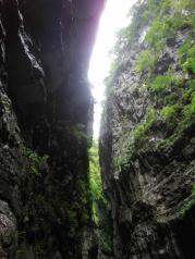 龙水峡地缝门票115元,从武隆天坑出来有景区游览车直达地缝景区,感觉地缝比天坑要漂亮,一路顺流而下,就是到处瀑布非常湿滑,一个半小时路程基本全身湿透,夏天来的话避暑的好地方值得推荐。整个游览过程像傣族的泼水节,好几个地方,从半山腰涌出的水流或瀑布,很大的水量集中在部分地段,嘻嘻地上伏河和那个瀑布的水量和水势都足够壮观。