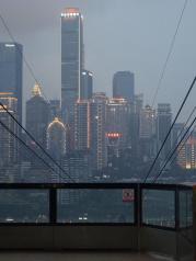 如果说要将重庆的景点排个热门度出来,长江索道怕是会牢牢占据top5的榜单吧。查看重庆旅游的攻略,几乎出现在了每一份的攻略中。 从解放碑步行过来,不会特别远,跟着导航就可以到达,天下着蒙蒙小雨,丝毫不影响游人火热的内心与一腔热情。五点半左右过来的,队伍已经排到了门外,望眼看去,满满的人群。 等了约一个小时,终于有机会看到索道的真面目了。如果是拿重庆本地人的交通卡,只需要1.8元,而如果是游客买票的话,则单程20,往返30。拿交通卡,每晚7点以后以及节假日,是不享受该优惠的。 这里曾是极限挑战的取景点,索道快速滑行的同时,还要记忆旁边大楼上的字,着实是有些刺激。一列车里拥着很多人,想要占据好位置拍