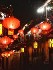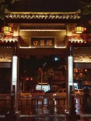 磁器口古镇不像其他古街,有它自己的味道。主街上依旧有着浓浓的商业气息,但旁边的小巷子还是别具特色的。3月份的时候过来的,主街上还是悬挂着红红的灯笼。虽然主街上面的店铺大都已经关门了,只剩下酒吧还在营业。下着蒙蒙细雨,偶尔能看到撑着衣服飞快跑步的年轻人,亦或者在雨中慢慢行走的老人,夜晚的磁器口没有了白天的人声鼎沸,多了一丝庄严宁静。 整个磁器口还保留着石板路,石块的坑坑哇哇,走起来十分带感。沿街的商铺大多是白墙青瓦木窗的风格,旁边还有个码头,古镇的旁边紧挨着嘉陵江。这里被赞誉为“小重庆”,曾是重庆古城的缩影和象征,在这里可以重庆这座山城的缩影,沿街一路都是重庆的人气美食小吃,来到这边,一定要带个