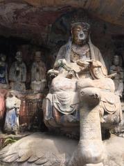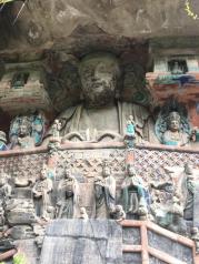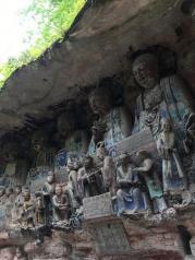 从主城区来大足一次,如果不到大足石刻难免就会有所遗憾。大足貌似有五座山上有石刻造像,我们选择了最负盛名的宝顶山石刻。一进景区,就会有很多女的过来问你需不需要讲解,150块左右。其实不用,只需关注它的官方微信和自带一副耳机就可以免费听讲解了,如果不听讲解,走马观花一圈,很快就完了。来大足石刻能体会到中国古代工匠在雕刻艺术的高深造诣。