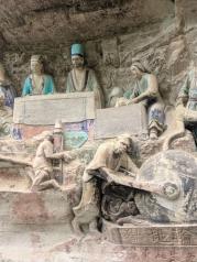 大足石刻,重庆唯一的世界文化遗产,世界十大石窟之一。它名气应该不及被称为“中国四大石窟”的莫高窟、云冈石窟、龙门石窟和麦积山石窟。它虽由民间建造较晚(唐宋),但被称为世界石窟艺术最后的丰碑,再现了很多接地气的生活场景和佛经故事;独有特色