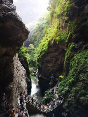 龙水峡地缝除门票略贵,其他还好。与天坑地缝一脉相连,出天坑坐大巴游龙水峡地缝,不走回头路。龙水峡地缝景色宜人,但路途陡峭,泉水流瀑挂壁险峻幽深,怪石峥嵘,地缝中老树藤萝盘绕,泉水流瀑挂壁险峻幽深,怪石峥嵘,明涧湍急。