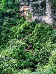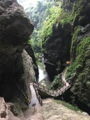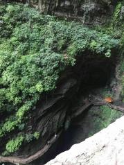 龙水峡地缝是武隆的一个著名景点,坐电梯下去比较省力一点,然后沿着步道行走,步道在崖壁边,从上往下看,非常的震撼,沟底很深。下到距地面80米的地下,欣赏各种奇,险,峻的自然风貌,非常震撼。