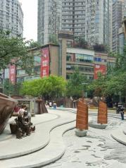 三峡广场沙坪坝比较繁华商圈,店铺林立,做了一些雕塑,增添了一些气氛,还有一条水景,水是流动,很多小孩在嘻戏玩耍,还是值得来看看的。
