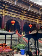 自从看了《疯狂的石头》我就一直想去罗汉寺看看,去重庆的时候终于如愿以偿。坐轻轨1号线到小什字,出站后走10分钟就到。罗汉寺门票10块,里面其实不大,古佛岩上有很多石刻的佛像,有点大足石刻的感觉,值得一看。罗汉堂里很多罗汉塑像了,生动有趣,活灵活现,可以去数数罗汉。罗汉寺门口有很多算命的见到游人就过来拉你算命,不要理会,要一搭话甩都甩不掉。电影里那个把黑皮关起来的明星下水道井盖就在门口不远,一定要去看看。另外寺内有素食餐厅可以吃斋饭,味道还不错,价格也不贵。罗汉寺离洪崖洞、解放碑、湖广会馆都是走路可达,去朝天门就2站路,建议安排在一天里游览
