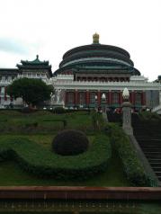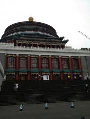 人民大礼堂就是一个大礼堂,和人民大会堂很像,据说是邓小平50年代建的,此后其他地方都没有这样的建筑了。前面有一个很大的广场,在山城算是很难得的了。广场上有几棵大树,成为人们休闲的地方。对面是三峡博物馆,如果来了,一并看了吧!